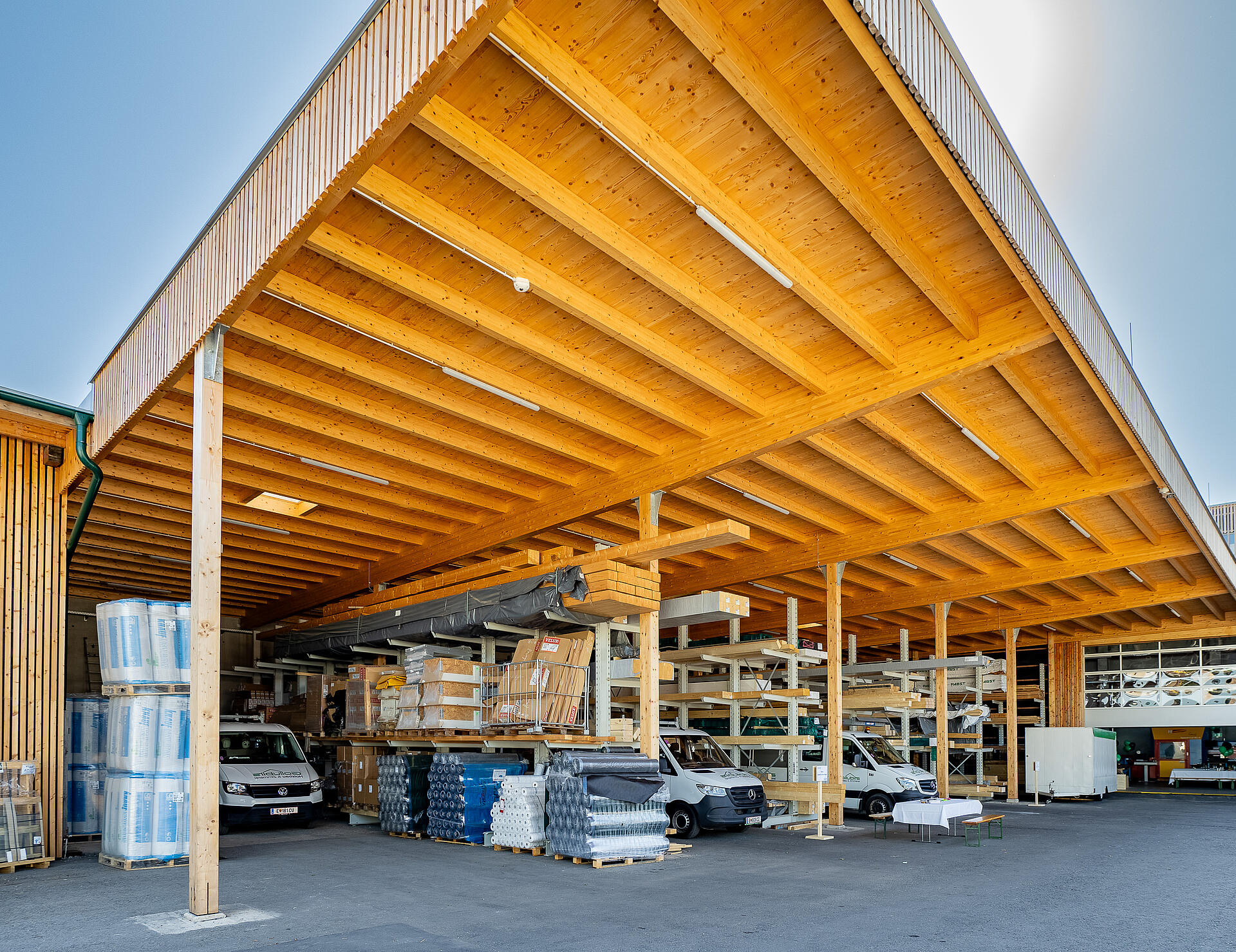 2020 entstand unsere zweite Abbundanlage – eine moderne Halle mit Fußbodenheizung, Krananlage und softwaregesteuerter Hundegger-Maschine. Sie ermöglicht die Bearbeitung besonders langer Holzteile, steigert unsere Flexibilität, erweitert die Kapazitäten und unterstreicht unseren Anspruch auf moderne Technik.