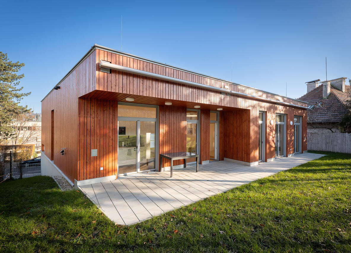 Kompakter und ökologisch ausgeführter Holzbau – klein, fein und hoch funktional.