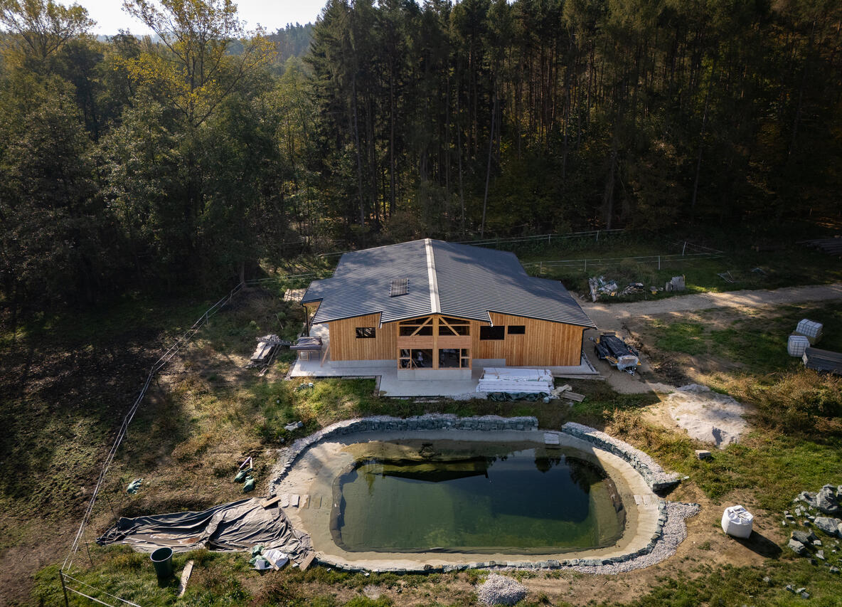 Dachstuhl und Hallenbau in Holz – natürlich eingebettet in die Landschaft.